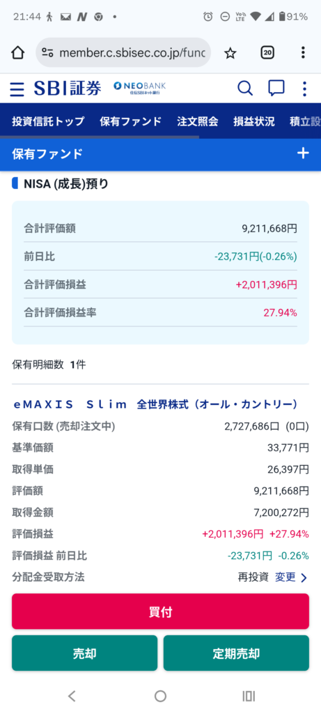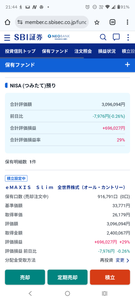 年初一括がいいか、つみたてが良いかは意見が分かれるところですが、新NISA開始後、成長投資枠は年初一括240万いれて、つみたて枠は毎月10万ずつをどちらもe-MAXIS Slim 全世界株式(オール・カントリー)に入れてきたところ・・・